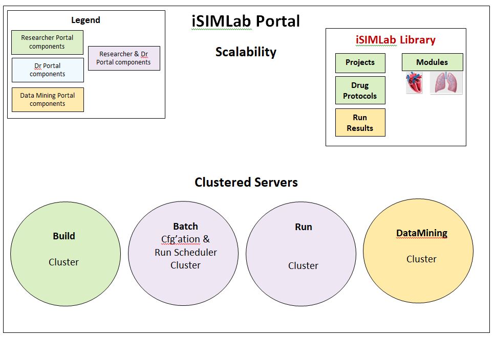Scalability becomes an issue as building and running extremely large application such as a human body simulator and it’s clones can take extensive resources. iSIMlab’s resources are scaled across a series of clustered web servers providing the scalability to easily run these applications in a near real time environment.